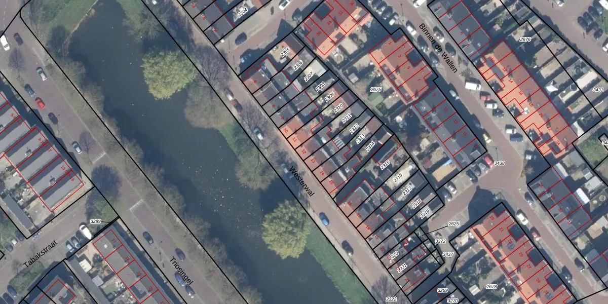 Gebruik de zoekbalk of klik op een perceel voor informatie over de adressen binnen dit perceel.