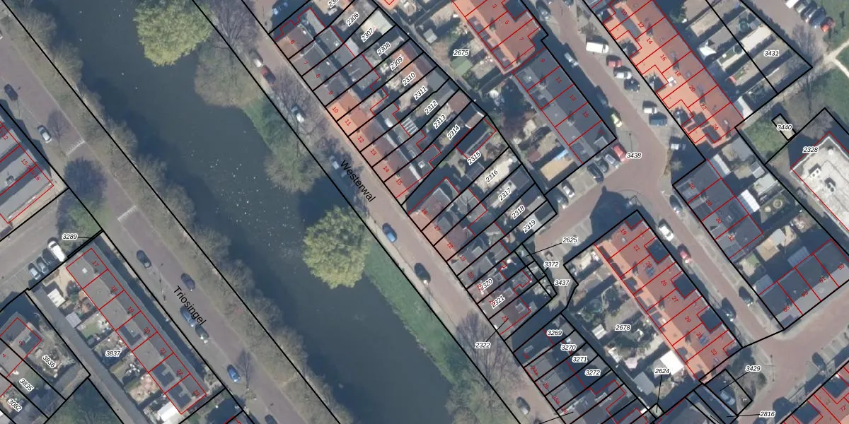 Gebruik de zoekbalk of klik op een perceel voor informatie over de adressen binnen dit perceel.