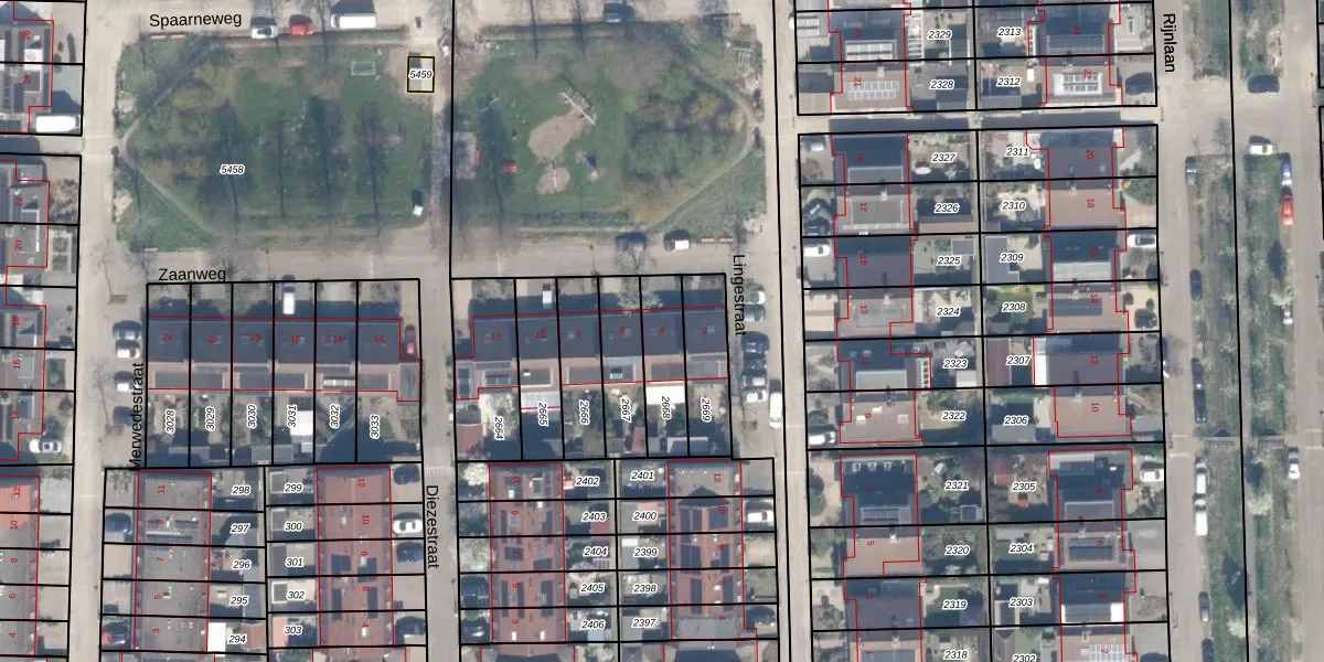 Gebruik de zoekbalk of klik op een perceel voor informatie over de adressen binnen dit perceel.