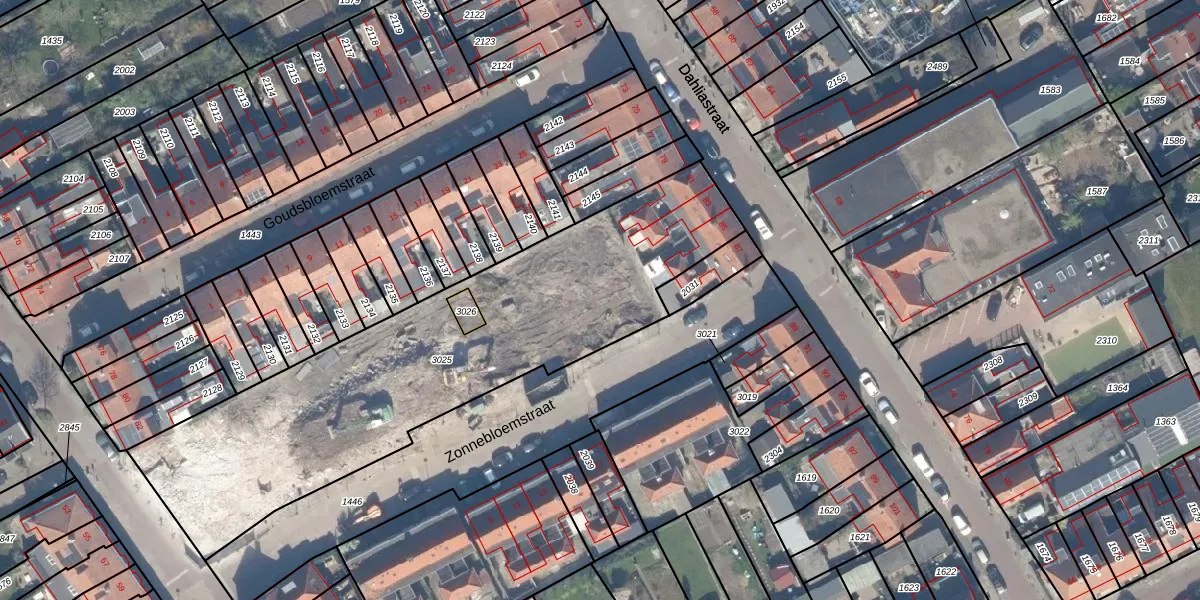 Het perceel waarop Zonnebloemstraat 24 staat heeft een oppervlakte van 2030 m². Dit is een zeer groot perceel. De perceeloppervlakte wordt geregistreerd door het Kadaster. Gedetailleerde informatie over de maten van dit perceel kunt u vinden in het rapport Kadastrale kaart met maatvoering van Zonnebloemstraat 24.