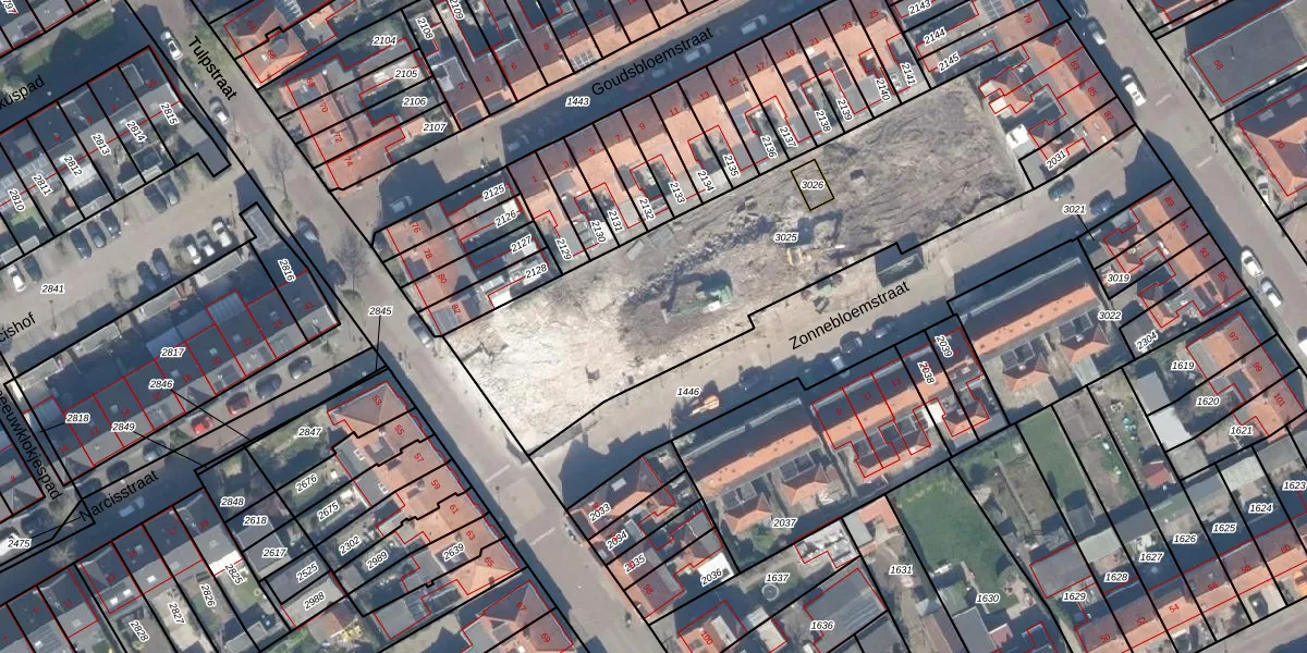 Het perceel waarop Zonnebloemstraat 6 staat heeft een oppervlakte van 2030 m². Dit is een zeer groot perceel. De perceeloppervlakte wordt geregistreerd door het Kadaster. Gedetailleerde informatie over de maten van dit perceel kunt u vinden in het rapport Kadastrale kaart met maatvoering van Zonnebloemstraat 6.