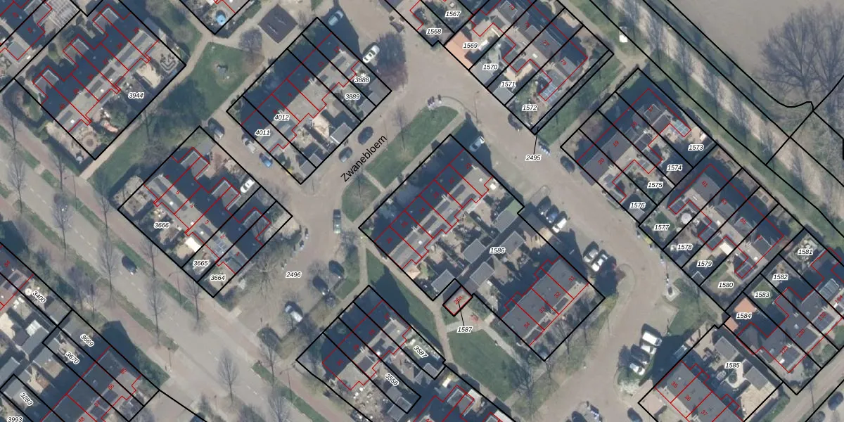 Het perceel waarop Zwanebloem 24 staat heeft een oppervlakte van 1362 m². Dit is een zeer groot perceel. De perceeloppervlakte wordt geregistreerd door het Kadaster. Gedetailleerde informatie over de maten van dit perceel kunt u vinden in het rapport Kadastrale kaart met maatvoering van Zwanebloem 24.
