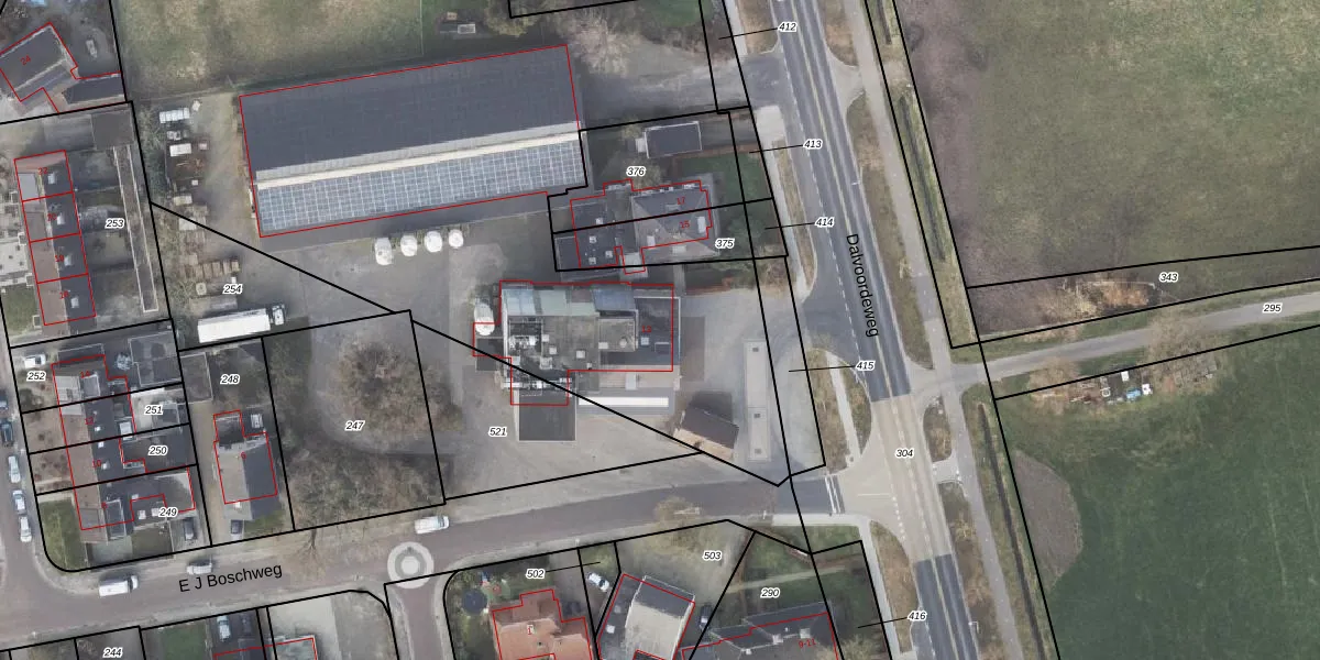 Gebruik de zoekbalk of klik op een perceel voor informatie over de adressen binnen dit perceel.