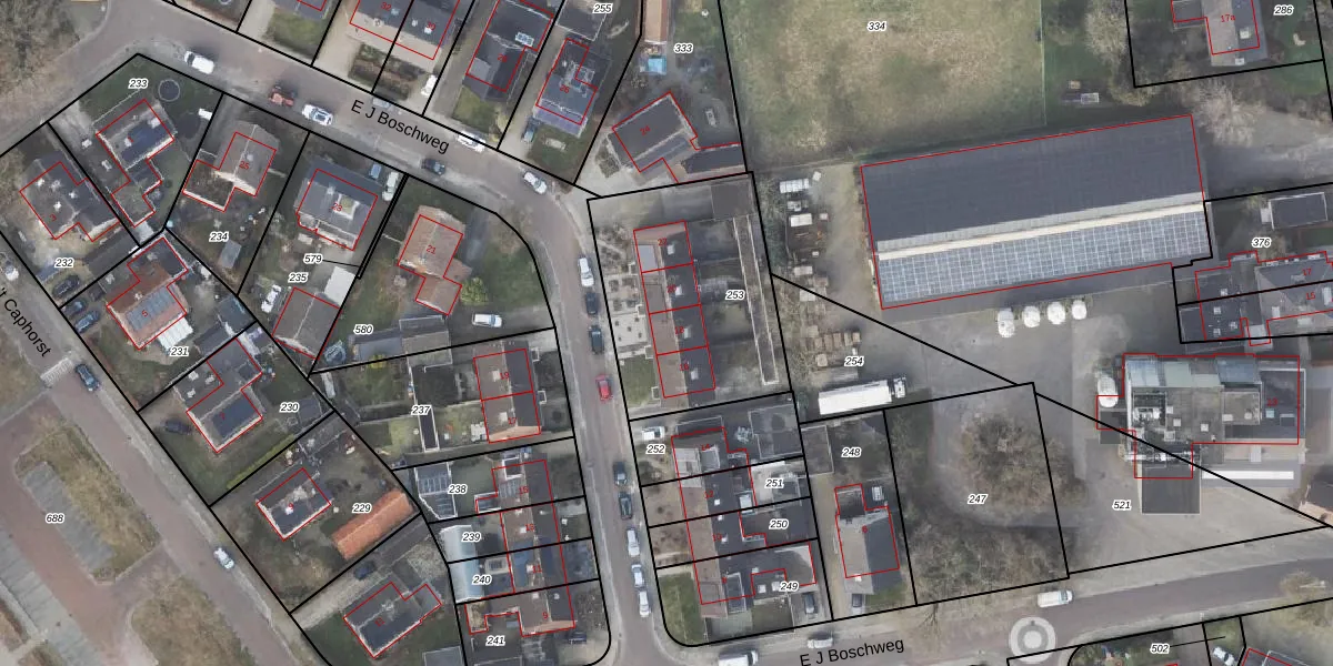 E J Boschweg 18 is gelegen op kadastraal perceel HLD01Y253. Deze kadastrale aanduiding is uniek en wordt gebruikt door het Kadaster om eigendomsrechten en andere zakelijke rechten vast te leggen. Het perceel maakt onderdeel uit van de kadastrale gemeente Hellendoorn.