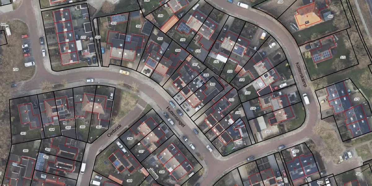 Het perceel waarop Huttensingel 10 staat heeft een oppervlakte van 250 m². Dit is een middelgroot perceel. De perceeloppervlakte wordt geregistreerd door het Kadaster. Gedetailleerde informatie over de maten van dit perceel kunt u vinden in het rapport Kadastrale kaart met maatvoering van Huttensingel 10.
