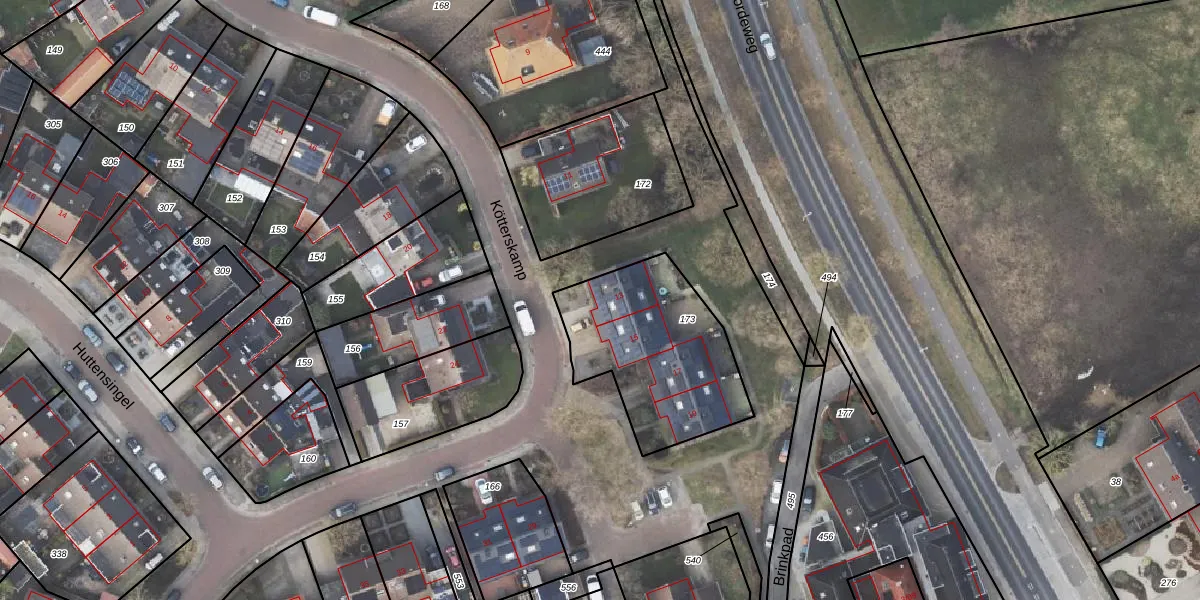 Het perceel waarop Kötterskamp 13 staat heeft een oppervlakte van 657 m². Dit is een groot perceel. De perceeloppervlakte wordt geregistreerd door het Kadaster. Gedetailleerde informatie over de maten van dit perceel kunt u vinden in het rapport Kadastrale kaart met maatvoering van Kötterskamp 13.