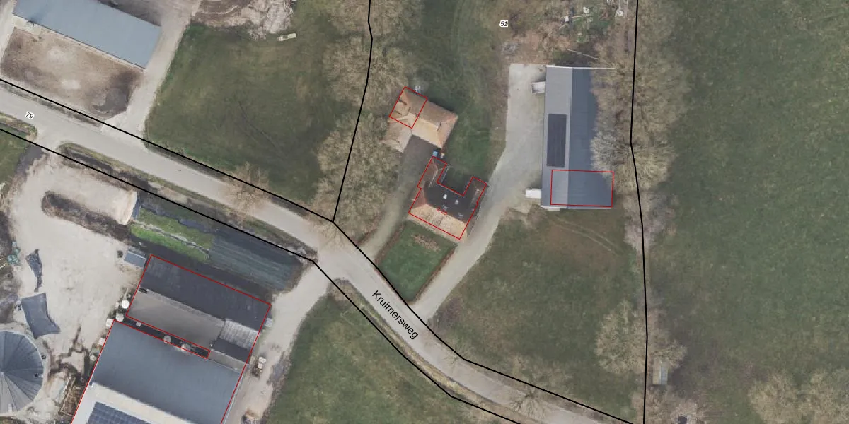 Het perceel waarop Kruimersweg 2-a staat heeft een oppervlakte van 9181 m². Dit is een zeer groot perceel. De perceeloppervlakte wordt geregistreerd door het Kadaster. Gedetailleerde informatie over de maten van dit perceel kunt u vinden in het rapport Kadastrale kaart met maatvoering van Kruimersweg 2-a.