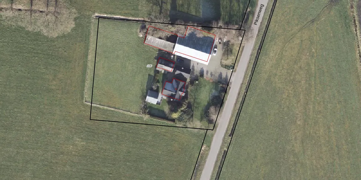 Het perceel waarop Piksenweg 14 staat heeft een oppervlakte van 4257 m². Dit is een zeer groot perceel. De perceeloppervlakte wordt geregistreerd door het Kadaster. Gedetailleerde informatie over de maten van dit perceel kunt u vinden in het rapport Kadastrale kaart met maatvoering van Piksenweg 14.