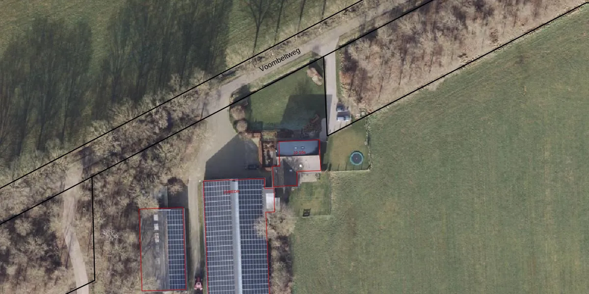 Het perceel waarop Voombeltweg 10-a staat heeft een oppervlakte van 11,8 ha. Dit is een zeer groot perceel. De perceeloppervlakte wordt geregistreerd door het Kadaster. Gedetailleerde informatie over de maten van dit perceel kunt u vinden in het rapport Kadastrale kaart met maatvoering van Voombeltweg 10-a.