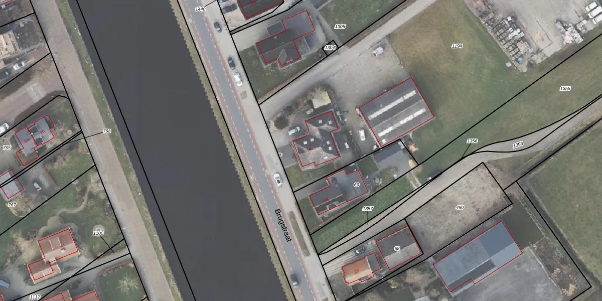 Het perceel waarop Brugstraat 18 staat heeft een oppervlakte van 5065 m². Dit is een zeer groot perceel. De perceeloppervlakte wordt geregistreerd door het Kadaster. Gedetailleerde informatie over de maten van dit perceel kunt u vinden in het rapport Kadastrale kaart met maatvoering van Brugstraat 18.