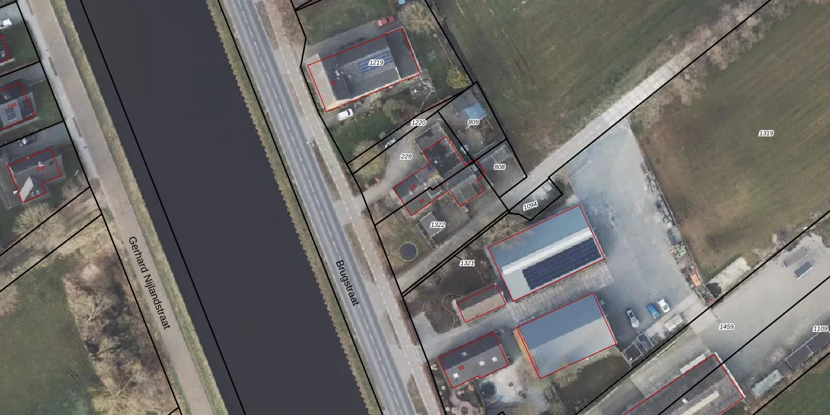 Het perceel waarop Brugstraat 34 staat heeft een oppervlakte van 457 m². Dit is een groot perceel. De perceeloppervlakte wordt geregistreerd door het Kadaster. Gedetailleerde informatie over de maten van dit perceel kunt u vinden in het rapport Kadastrale kaart met maatvoering van Brugstraat 34.