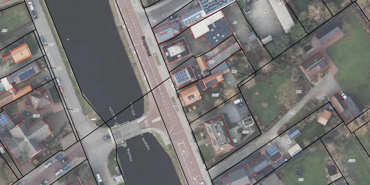 Het perceel waarop Brugstraat 4-a staat heeft een oppervlakte van 742 m². Dit is een groot perceel. De perceeloppervlakte wordt geregistreerd door het Kadaster. Gedetailleerde informatie over de maten van dit perceel kunt u vinden in het rapport Kadastrale kaart met maatvoering van Brugstraat 4-a.