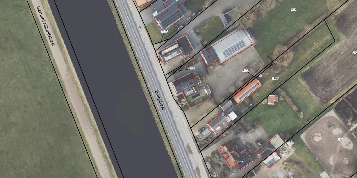 Het perceel waarop Brugstraat 61 staat heeft een oppervlakte van 4710 m². Dit is een zeer groot perceel. De perceeloppervlakte wordt geregistreerd door het Kadaster. Gedetailleerde informatie over de maten van dit perceel kunt u vinden in het rapport Kadastrale kaart met maatvoering van Brugstraat 61.