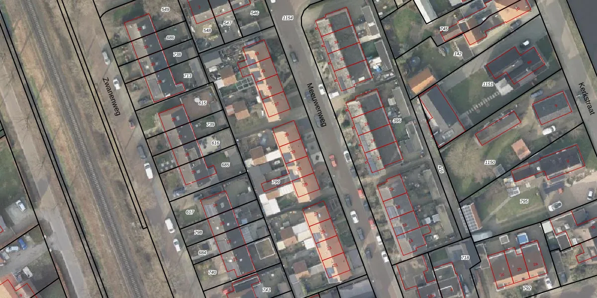 Het perceel waarop Meeuwenweg 33 staat heeft een oppervlakte van 2312 m². Dit is een zeer groot perceel. De perceeloppervlakte wordt geregistreerd door het Kadaster. Gedetailleerde informatie over de maten van dit perceel kunt u vinden in het rapport Kadastrale kaart met maatvoering van Meeuwenweg 33.