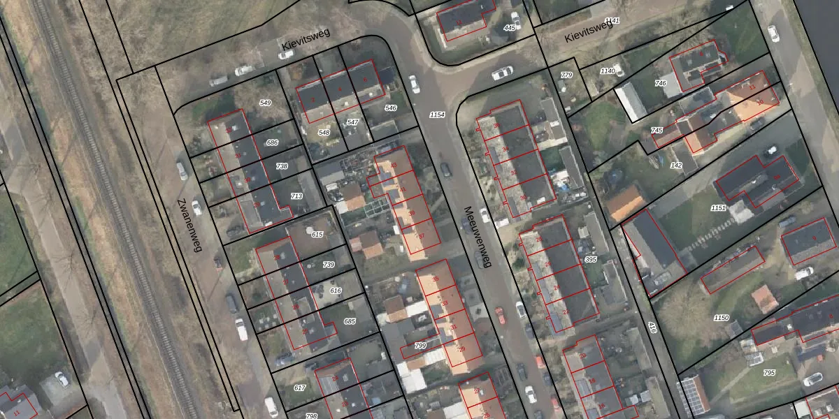 Het perceel waarop Meeuwenweg 39 staat heeft een oppervlakte van 2312 m². Dit is een zeer groot perceel. De perceeloppervlakte wordt geregistreerd door het Kadaster. Gedetailleerde informatie over de maten van dit perceel kunt u vinden in het rapport Kadastrale kaart met maatvoering van Meeuwenweg 39.
