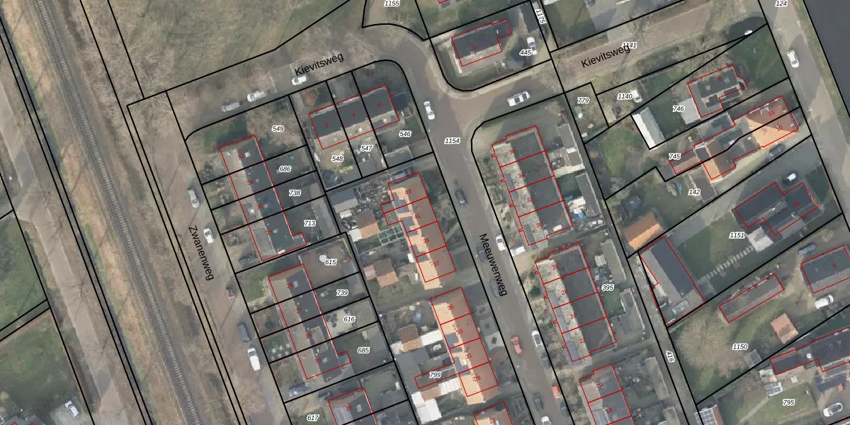 Het perceel waarop Meeuwenweg 41 staat heeft een oppervlakte van 2312 m². Dit is een zeer groot perceel. De perceeloppervlakte wordt geregistreerd door het Kadaster. Gedetailleerde informatie over de maten van dit perceel kunt u vinden in het rapport Kadastrale kaart met maatvoering van Meeuwenweg 41.