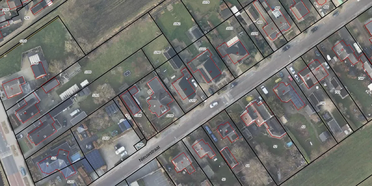 Het perceel waarop Nieuwstraat 1-d staat heeft een oppervlakte van 434 m². Dit is een groot perceel. De perceeloppervlakte wordt geregistreerd door het Kadaster. Gedetailleerde informatie over de maten van dit perceel kunt u vinden in het rapport Kadastrale kaart met maatvoering van Nieuwstraat 1-d.