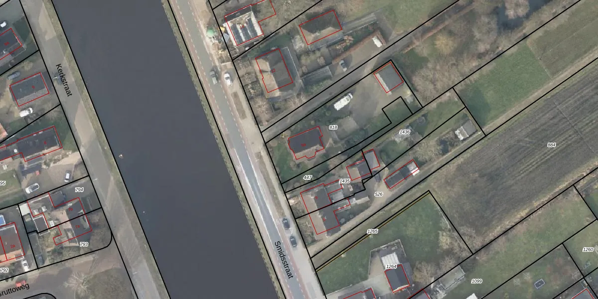 Het perceel waarop Smidsstraat 9-a staat heeft een oppervlakte van 850 m². Dit is een groot perceel. De perceeloppervlakte wordt geregistreerd door het Kadaster. Gedetailleerde informatie over de maten van dit perceel kunt u vinden in het rapport Kadastrale kaart met maatvoering van Smidsstraat 9-a.