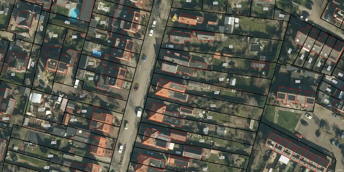 Het perceel waarop Beatrixlaan 13 staat heeft een oppervlakte van 510 m². Dit is een groot perceel. De perceeloppervlakte wordt geregistreerd door het Kadaster. Gedetailleerde informatie over de maten van dit perceel kunt u vinden in het rapport Kadastrale kaart met maatvoering van Beatrixlaan 13.