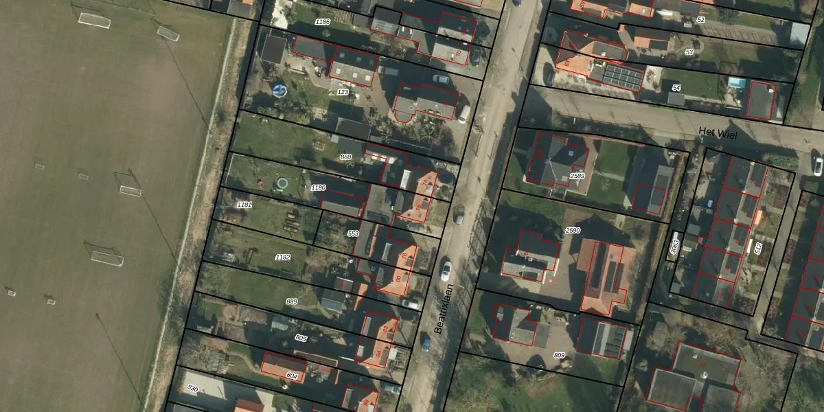 Het perceel waarop Beatrixlaan 76 staat heeft een oppervlakte van 475 m². Dit is een groot perceel. De perceeloppervlakte wordt geregistreerd door het Kadaster. Gedetailleerde informatie over de maten van dit perceel kunt u vinden in het rapport Kadastrale kaart met maatvoering van Beatrixlaan 76.