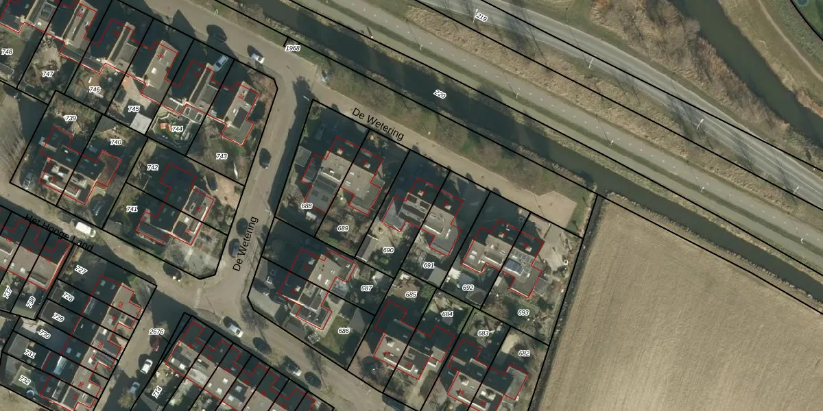 Het perceel waarop De Wetering 13 staat heeft een oppervlakte van 325 m². Dit is een groot perceel. De perceeloppervlakte wordt geregistreerd door het Kadaster. Gedetailleerde informatie over de maten van dit perceel kunt u vinden in het rapport Kadastrale kaart met maatvoering van De Wetering 13.