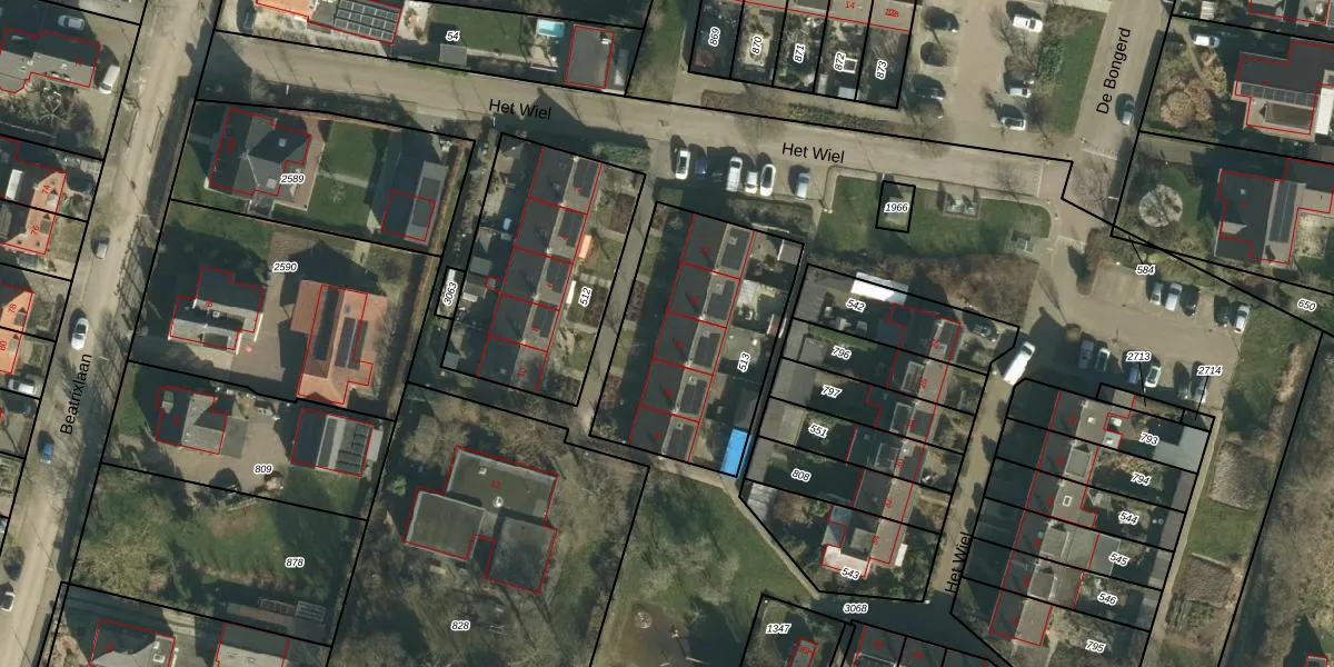Het perceel waarop Het Wiel 18 staat heeft een oppervlakte van 845 m². Dit is een groot perceel. De perceeloppervlakte wordt geregistreerd door het Kadaster. Gedetailleerde informatie over de maten van dit perceel kunt u vinden in het rapport Kadastrale kaart met maatvoering van Het Wiel 18.