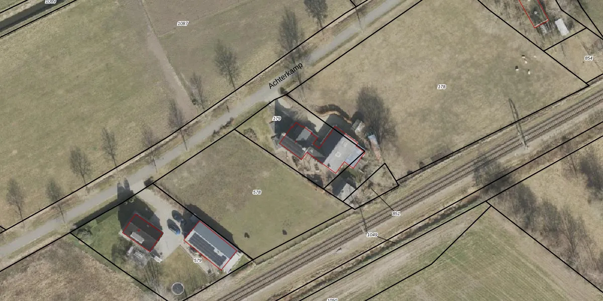 Achterkamp 7 is gelegen op kadastraal perceel DLN00I179. Deze kadastrale aanduiding is uniek en wordt gebruikt door het Kadaster om eigendomsrechten en andere zakelijke rechten vast te leggen. Het perceel maakt onderdeel uit van de kadastrale gemeente Dalen.