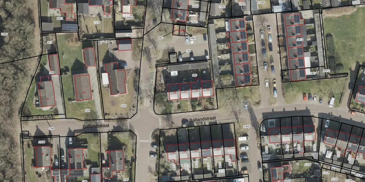 Ballandstraat 37 is gelegen op kadastraal perceel DLN00M680. Deze kadastrale aanduiding is uniek en wordt gebruikt door het Kadaster om eigendomsrechten en andere zakelijke rechten vast te leggen. Het perceel maakt onderdeel uit van de kadastrale gemeente Dalen.