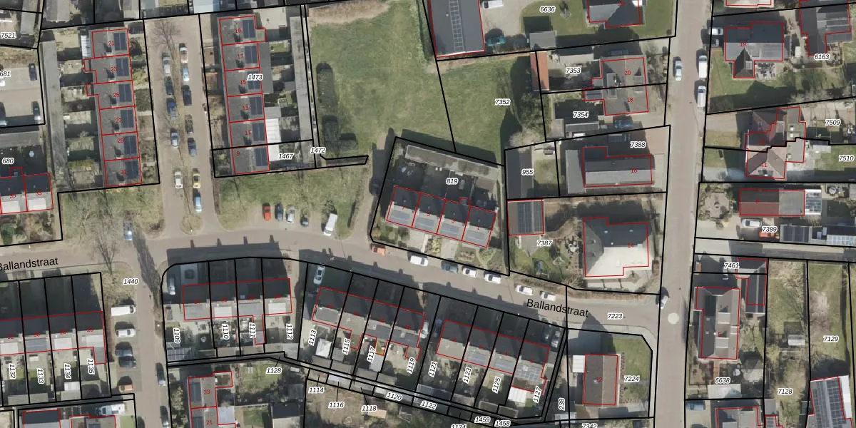 Het perceel waarop Ballandstraat 5 staat heeft een oppervlakte van 742 m². Dit is een groot perceel. De perceeloppervlakte wordt geregistreerd door het Kadaster. Gedetailleerde informatie over de maten van dit perceel kunt u vinden in het rapport Kadastrale kaart met maatvoering van Ballandstraat 5.