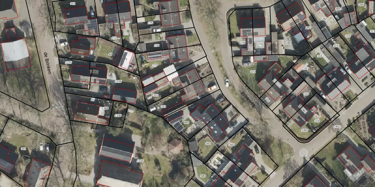 Het perceel waarop Brinkweg 12 staat heeft een oppervlakte van 363 m². Dit is een groot perceel. De perceeloppervlakte wordt geregistreerd door het Kadaster. Gedetailleerde informatie over de maten van dit perceel kunt u vinden in het rapport Kadastrale kaart met maatvoering van Brinkweg 12.
