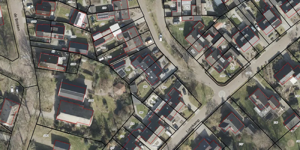 Het perceel waarop Brinkweg 16 staat heeft een oppervlakte van 448 m². Dit is een groot perceel. De perceeloppervlakte wordt geregistreerd door het Kadaster. Gedetailleerde informatie over de maten van dit perceel kunt u vinden in het rapport Kadastrale kaart met maatvoering van Brinkweg 16.