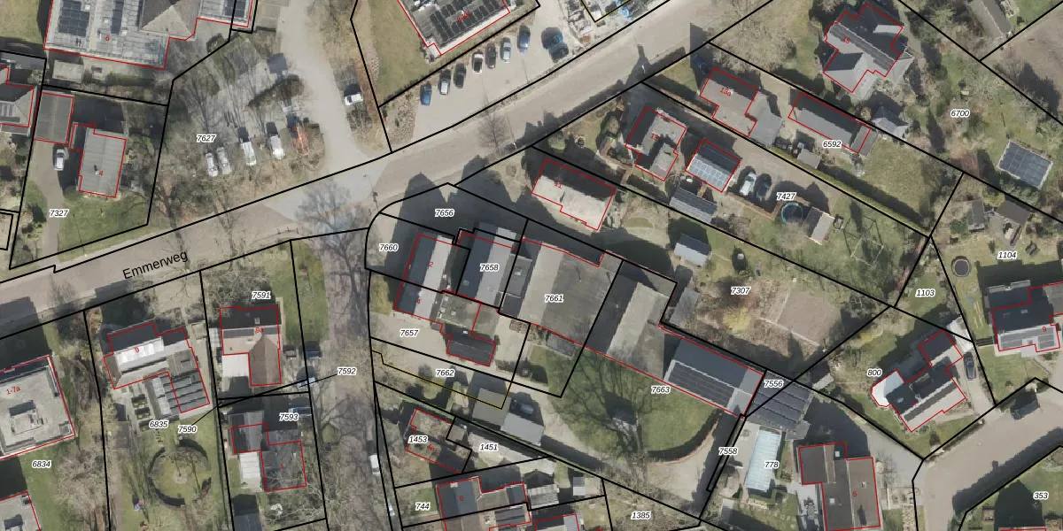 Het adres is gelegen op perceel 7661 in de sectie C en de kadastrale gemeente Dalen. De kadastrale aanduiding is aldus DLN00-C-7661. De gemiddelde perceelgrootte in Dalen is 1,2 ha. Dit perceel is kleiner: de perceeloppervlakte bedraagt 446 m². Het kleinste perceel in de kadastrale gemeente is 0 m² groot. De grootste perceeloppervlakte is 66,8 ha. Er zijn 4 adressen aanwezig op het perceel. In de Basisregistratie Kadaster (BRK) werden de grenzen van het perceel geregistreerd op 17-10-2025.