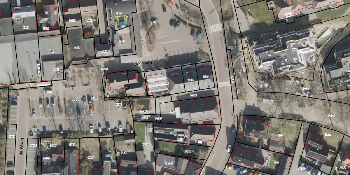 de Waag 10 is gelegen op kadastraal perceel DLN00C7362. Deze kadastrale aanduiding is uniek en wordt gebruikt door het Kadaster om eigendomsrechten en andere zakelijke rechten vast te leggen. Het perceel maakt onderdeel uit van de kadastrale gemeente Dalen.