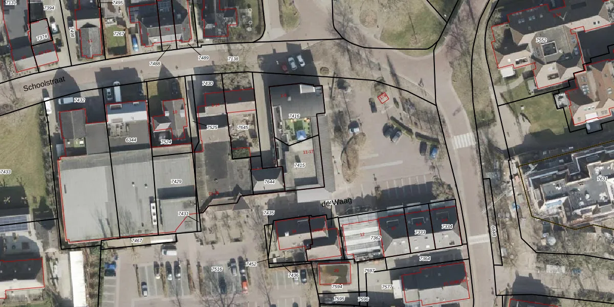 de Waag 15 is gelegen op kadastraal perceel DLN00C7415. Deze kadastrale aanduiding is uniek en wordt gebruikt door het Kadaster om eigendomsrechten en andere zakelijke rechten vast te leggen. Het perceel maakt onderdeel uit van de kadastrale gemeente Dalen.