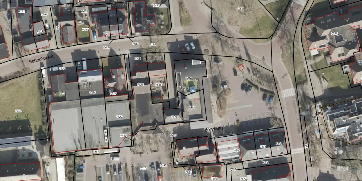 de Waag 5 is gelegen op kadastraal perceel DLN00C7416. Deze kadastrale aanduiding is uniek en wordt gebruikt door het Kadaster om eigendomsrechten en andere zakelijke rechten vast te leggen. Het perceel maakt onderdeel uit van de kadastrale gemeente Dalen.