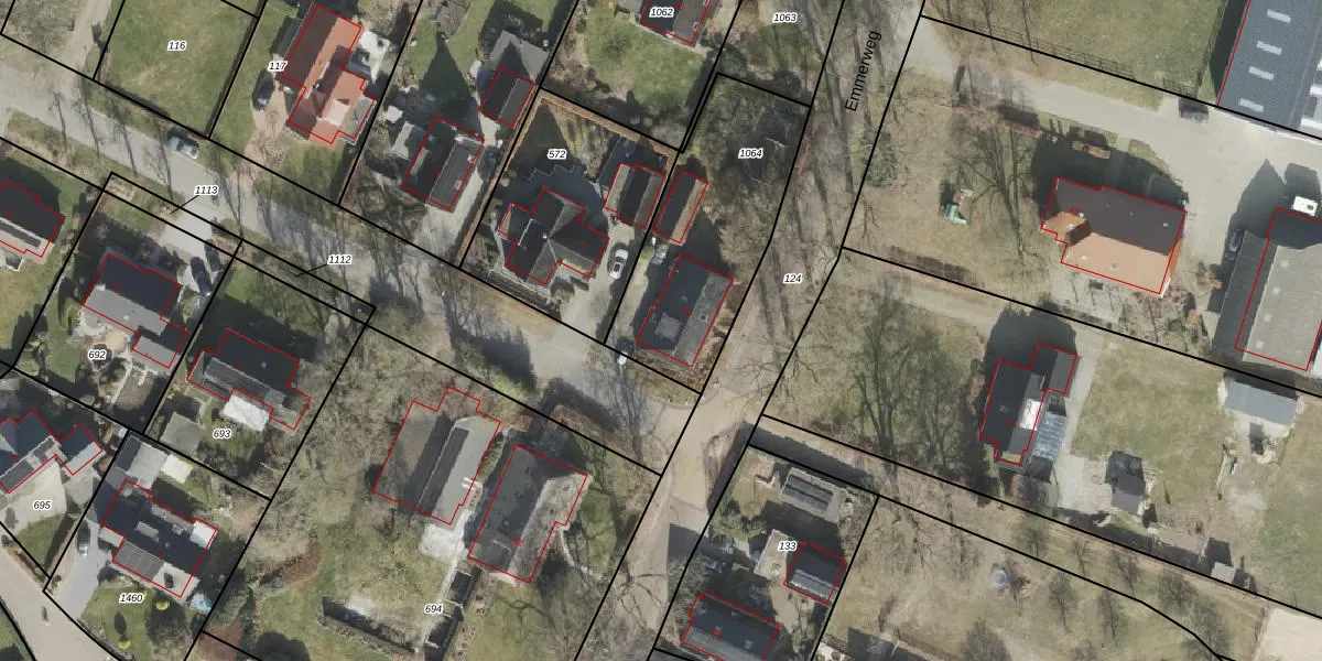 Emmerweg 64 is gelegen op kadastraal perceel DLN00I1064. Deze kadastrale aanduiding is uniek en wordt gebruikt door het Kadaster om eigendomsrechten en andere zakelijke rechten vast te leggen. Het perceel maakt onderdeel uit van de kadastrale gemeente Dalen.