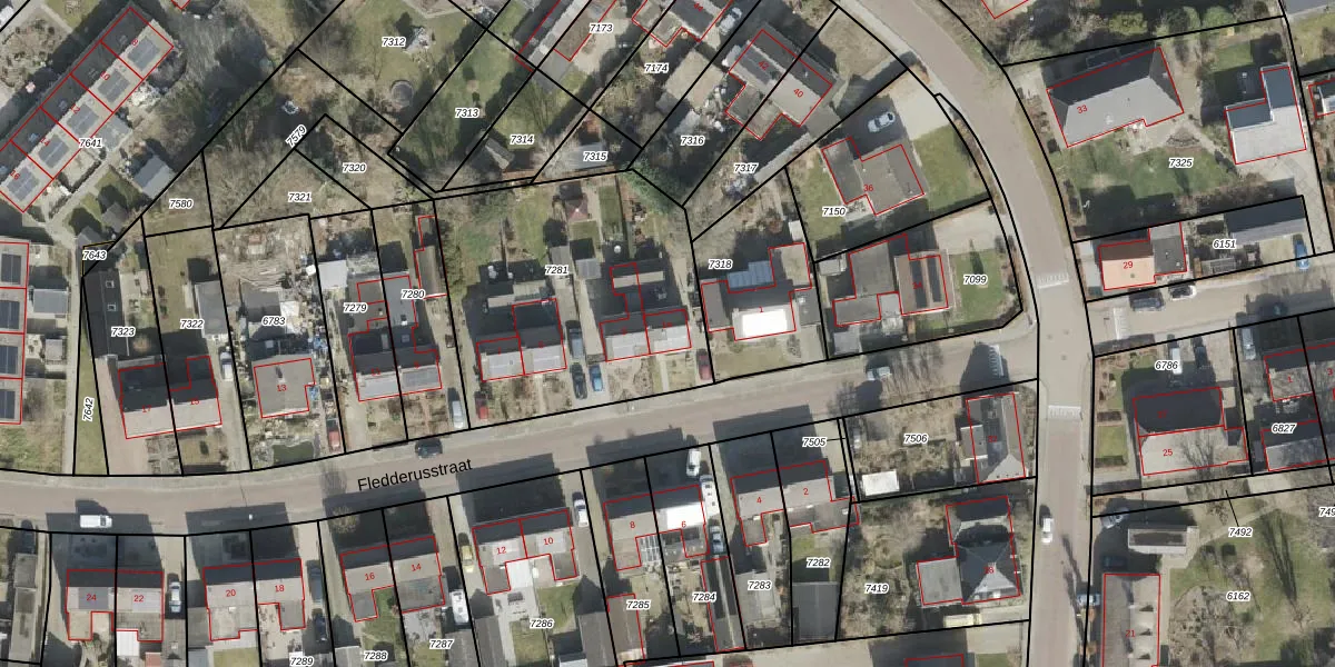 Het perceel waarop Fledderusstraat 1-a staat heeft een oppervlakte van 1247 m². Dit is een zeer groot perceel. De perceeloppervlakte wordt geregistreerd door het Kadaster. Gedetailleerde informatie over de maten van dit perceel kunt u vinden in het rapport Kadastrale kaart met maatvoering van Fledderusstraat 1-a.