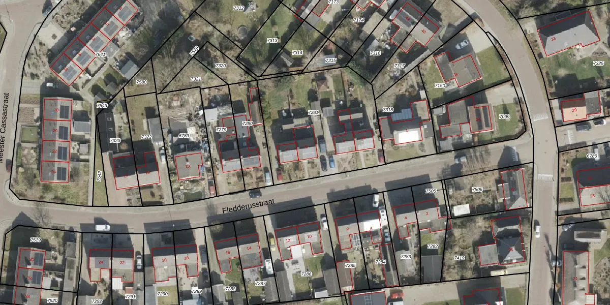 Het perceel waarop Fledderusstraat 5 staat heeft een oppervlakte van 1247 m². Dit is een zeer groot perceel. De perceeloppervlakte wordt geregistreerd door het Kadaster. Gedetailleerde informatie over de maten van dit perceel kunt u vinden in het rapport Kadastrale kaart met maatvoering van Fledderusstraat 5.