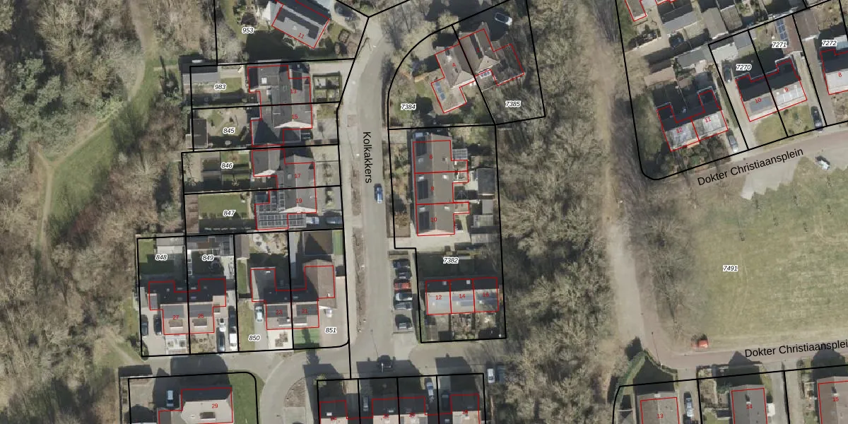 Kolkakkers 10 is gelegen op kadastraal perceel DLN00C7382. Deze kadastrale aanduiding is uniek en wordt gebruikt door het Kadaster om eigendomsrechten en andere zakelijke rechten vast te leggen. Het perceel maakt onderdeel uit van de kadastrale gemeente Dalen.