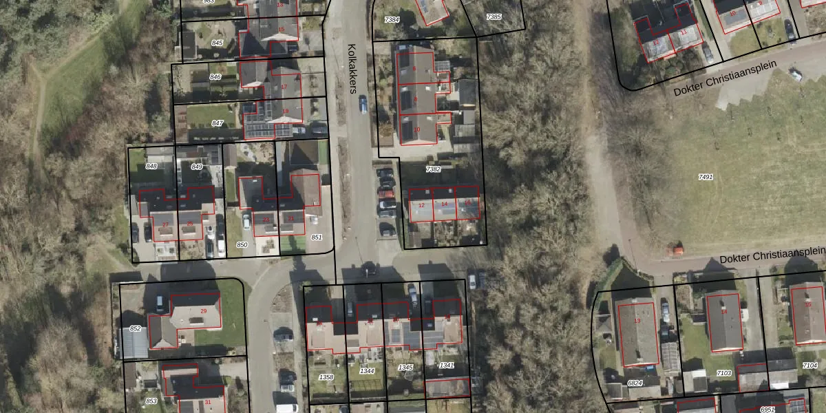 Kolkakkers 12 is gelegen op kadastraal perceel DLN00C7382. Deze kadastrale aanduiding is uniek en wordt gebruikt door het Kadaster om eigendomsrechten en andere zakelijke rechten vast te leggen. Het perceel maakt onderdeel uit van de kadastrale gemeente Dalen.