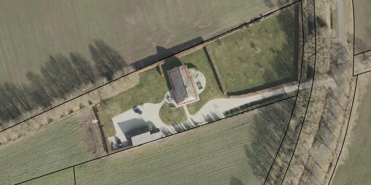 Het adres ligt op het perceel DLN00-F-607, dat zich in de kadastrale gemeente Dalen bevindt. Het perceel is 8000 m² groot. Dat is kleiner dan de gemiddelde perceeloppervlakte in Dalen, dat op 1,2 ha ligt. Het grootste perceel in de kadastrale gemeente is 66,8 ha. Het kleinste perceel heeft een oppervlakte van 0 m². Dit is het enige adres dat aanwezig is op het perceel. De huidige grenzen van het perceel zijn digitaal in de Basisregistratie Kadaster (BRK) geregistreerd op 17-04-2003.