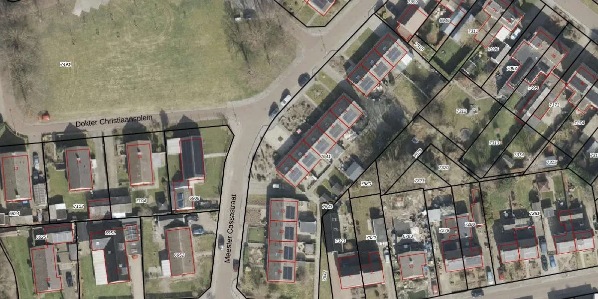 Het perceel waarop Meester Cassastraat 14 staat heeft een oppervlakte van 3111 m². Dit is een zeer groot perceel. De perceeloppervlakte wordt geregistreerd door het Kadaster. Gedetailleerde informatie over de maten van dit perceel kunt u vinden in het rapport Kadastrale kaart met maatvoering van Meester Cassastraat 14.