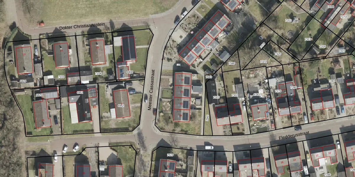 Het perceel waarop Meester Cassastraat 20 staat heeft een oppervlakte van 3111 m². Dit is een zeer groot perceel. De perceeloppervlakte wordt geregistreerd door het Kadaster. Gedetailleerde informatie over de maten van dit perceel kunt u vinden in het rapport Kadastrale kaart met maatvoering van Meester Cassastraat 20.