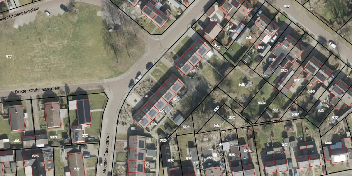 Het perceel waarop Meester Cassastraat 8 staat heeft een oppervlakte van 3111 m². Dit is een zeer groot perceel. De perceeloppervlakte wordt geregistreerd door het Kadaster. Gedetailleerde informatie over de maten van dit perceel kunt u vinden in het rapport Kadastrale kaart met maatvoering van Meester Cassastraat 8.