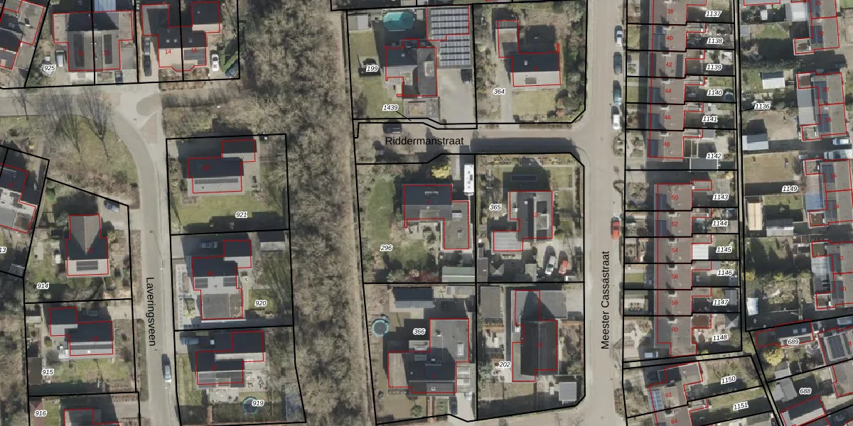 Het perceel waarop Riddermanstraat 2 staat heeft een oppervlakte van 786 m². Dit is een groot perceel. De perceeloppervlakte wordt geregistreerd door het Kadaster. Gedetailleerde informatie over de maten van dit perceel kunt u vinden in het rapport Kadastrale kaart met maatvoering van Riddermanstraat 2.