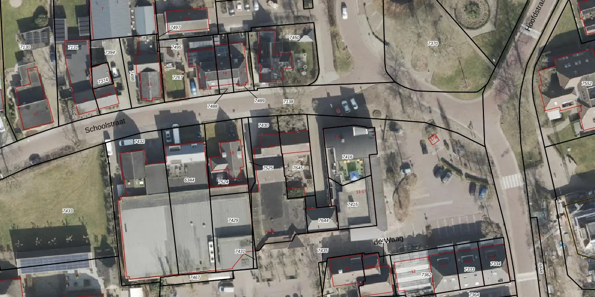 Schoolstraat 6 is gelegen op kadastraal perceel DLN00C7645. Deze kadastrale aanduiding is uniek en wordt gebruikt door het Kadaster om eigendomsrechten en andere zakelijke rechten vast te leggen. Het perceel maakt onderdeel uit van de kadastrale gemeente Dalen.