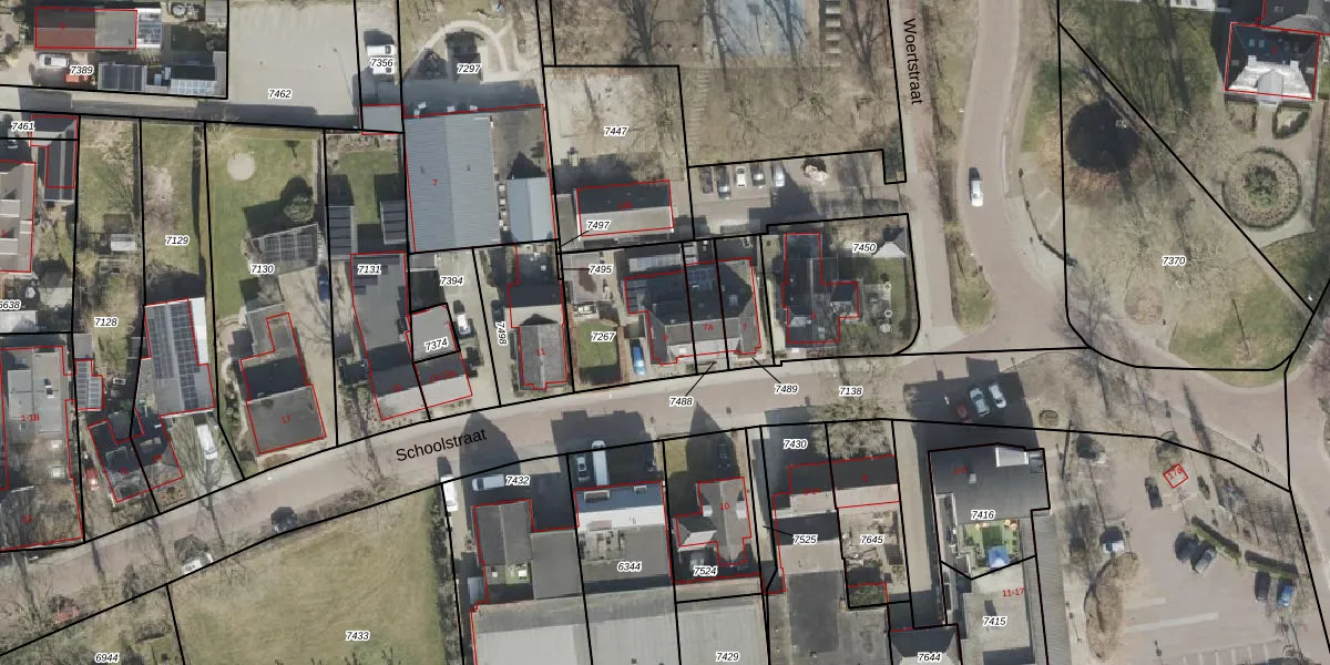 Het perceel waarop Schoolstraat 9 staat heeft een oppervlakte van 390 m². Dit is een groot perceel. De perceeloppervlakte wordt geregistreerd door het Kadaster. Gedetailleerde informatie over de maten van dit perceel kunt u vinden in het rapport Kadastrale kaart met maatvoering van Schoolstraat 9.