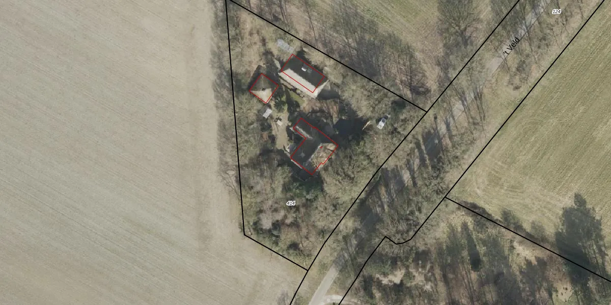Het perceel waarop 't Veld 4 staat heeft een oppervlakte van 3250 m². Dit is een zeer groot perceel. De perceeloppervlakte wordt geregistreerd door het Kadaster. Gedetailleerde informatie over de maten van dit perceel kunt u vinden in het rapport Kadastrale kaart met maatvoering van 't Veld 4.