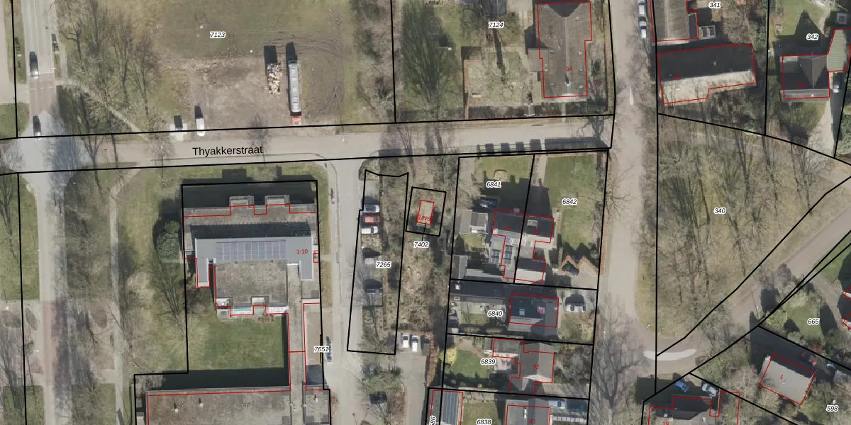Het perceel waarop Thyakkerstraat 21-NST staat heeft een oppervlakte van 84 m². Dit is een klein perceel. De perceeloppervlakte wordt geregistreerd door het Kadaster. Gedetailleerde informatie over de maten van dit perceel kunt u vinden in het rapport Kadastrale kaart met maatvoering van Thyakkerstraat 21-NST.
