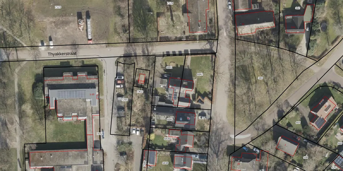 Gebruik de zoekbalk of klik op een perceel voor informatie over de adressen binnen dit perceel.